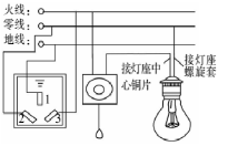 从左至右,三孔插座的左孔接零线,右孔接火线,上孔接地线;电灯的接法是火线接开关,开关另一端接灯泡顶端金属点,零线接灯泡螺旋套。