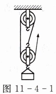 12. 用如图11-4-1所示的滑轮组提起重为900 N的物体A,使物体在1 min内上升了4 m,所用的拉力为400 N,求:(不计绳重以及绳和轮之间摩擦)