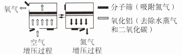 7. 从空气中分离出氧气有多种方法,变压吸附法是其中一种。变压吸附法利用分子筛吸附氮气和氧气能力的差异将二者进行分离。在吸附塔中,通过加压与减压的交替循环,可以使分子筛重复使用。
