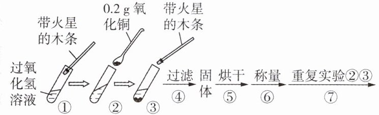 6. 学习了二氧化锰对过氧化氢分解有催化作用的知识后,某同学想:氧化铜能否起到类似二氧化锰的催化作用呢?于是进行了以下探究。
