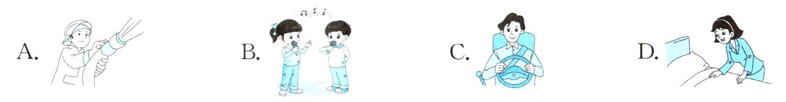 )2. A. firefighter B. cook C. police(