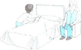 )3. Amy is making the bed in the old people's home.(