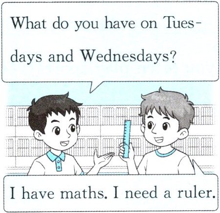 六、Mingming 和 Tom 在准备新学期需要的学习用品。根据对话内容用 1~4 给图片排序。