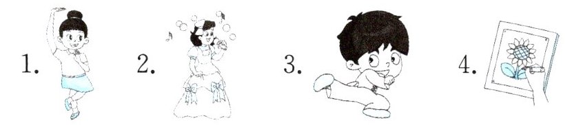 四、班级里来了四名新同学。快来看看他们都会做什么吧!请根据图片提示选择合适的选项补全对话。