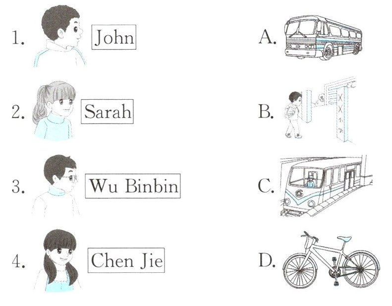 1. A 2. C 3. How 4. My friend and I come to school by bus.