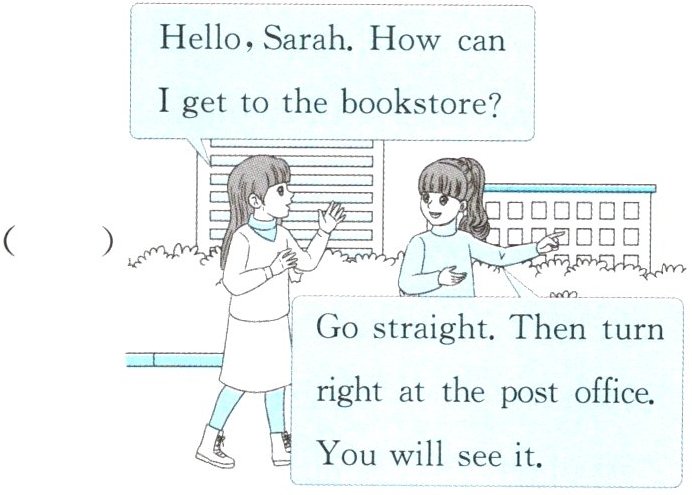 四、Mary找不到书店了。按照对话发生的顺序将图片按1~3排序。