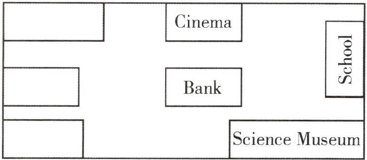 1. B 2. A 3. Where cinema 4. It is next to the shop.