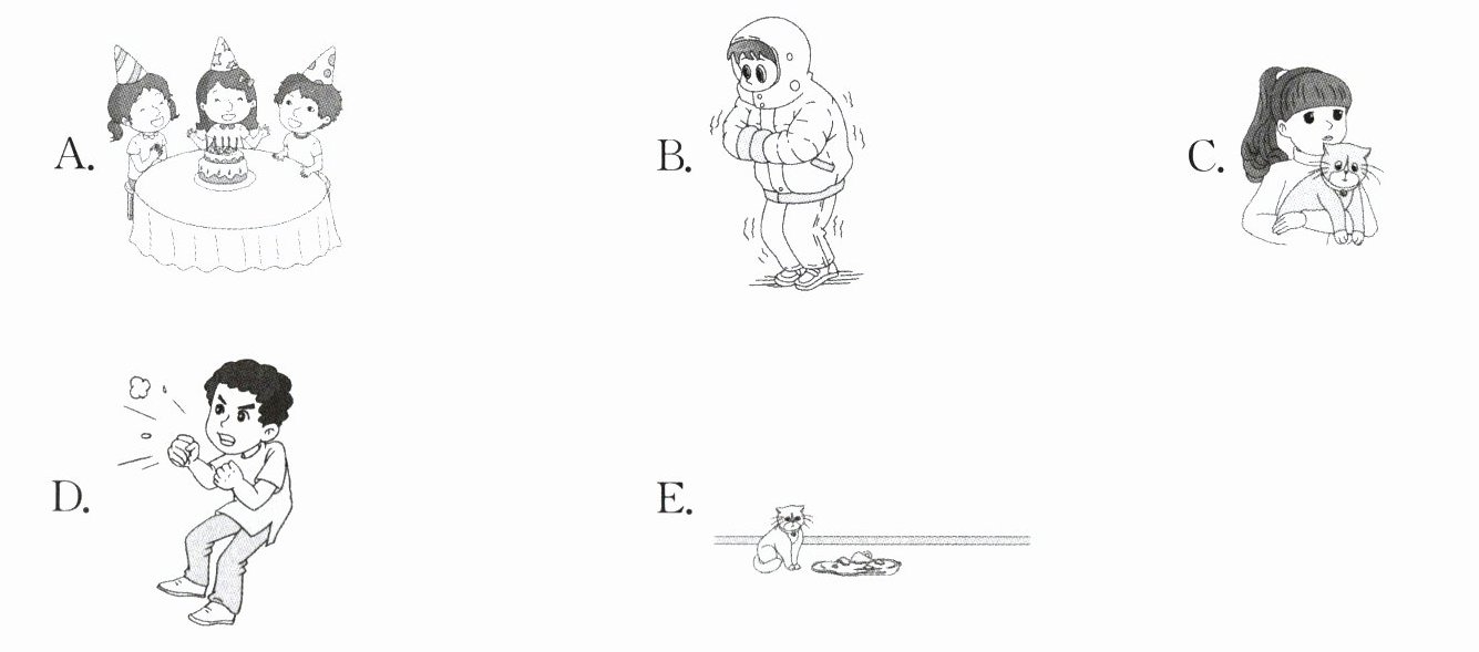 ( )1. —The cat broke the cup. —Yes. It is afraid.