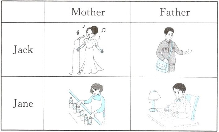 四、表格呈现了 Jack 和 Jane 父母的职业。请你根据表格提示补全对话。