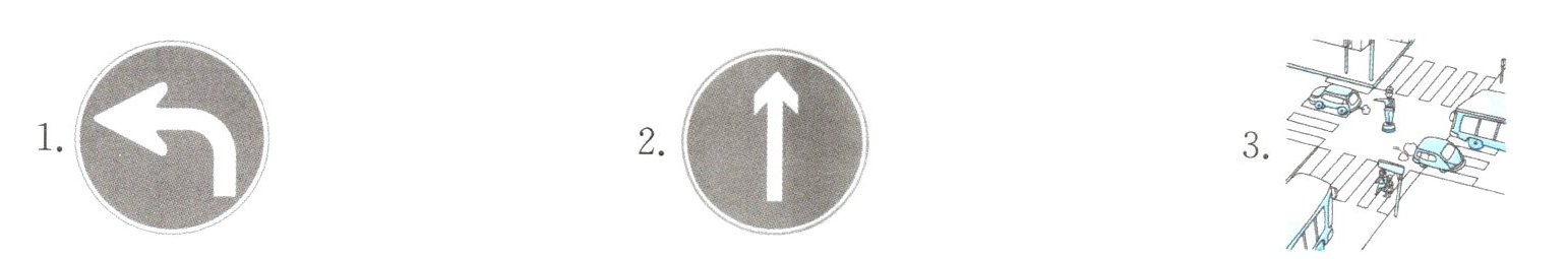 1. in front of 2. Go straight 3. Turn left