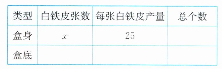 【例 1】用白铁皮做罐头盒,每张白铁皮可制作盒身 25 个或盒底 40 个,1 个盒身与 2 个盒底配成 1 个罐头盒。现有 36 张白铁皮,用多少张制作盒身,多少张制作盒底可以使盒身与盒底正好配套?
