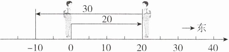 如图,若第一次向东走 20 m,第二次向西走 30 m,两次运动后在出发点的什么方向?与出发点相距多少米?如何用算式表示?