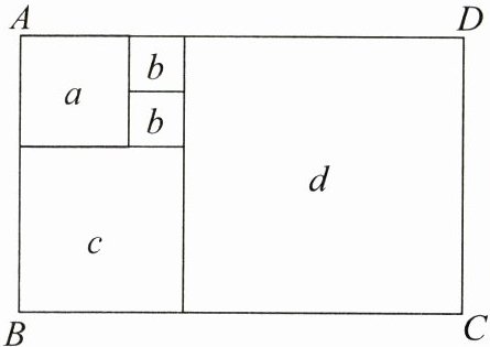 19. (新定义题)如果一个长方形的内部能用一些正方形铺满,既不重叠,又无缝隙,我们就称它为“优美长方形”. 如图所示,优美长方形$ABCD$的周长为 26,则正方形$d$的边长为___