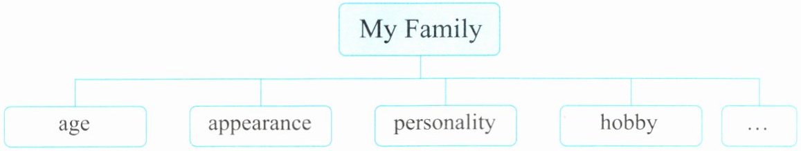 任务情境:为了让同学们更好地了解彼此的家庭,你们班将举办一次家庭照片展览活动,老师让同学们根据家庭照片来介绍自己的家人。形式上参考教材第 34 页 3b。请运用本单元所学相关知识,并参考下面思维导图,介绍自己的家人。