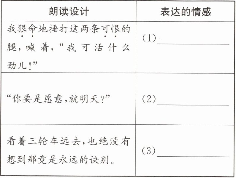 2. 下面是一位同学为课文设计的部分朗读脚本,请你帮助他完成下面的朗读脚本。