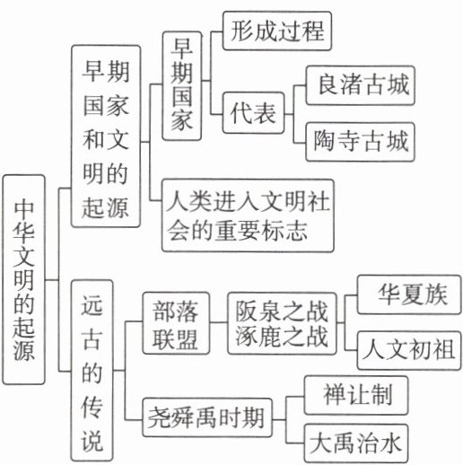 1.早期国家形成过程:5000多年前,早期城市逐步形成→社会成员之间的分化加剧,出现了掌握政治、经济、军事和祭祀权力的王→以王为首的统治阶级对内进行统治,对外发动战争,从而形成了