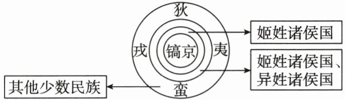 11. 西周统治者认为“世界”秩序应该同下图中的同心圆一样,圆中心是天下中心“镐京”,接着按照亲疏远近关系由内向外建立诸侯国,抵御外来入侵,拱卫周王室的统治。西周统治者基于这一认知,实行的制度是(