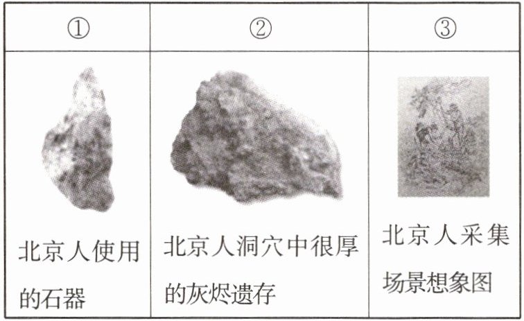 (1)①②;选①:北京人会制造和使用石器(或选②:北京人会使用火并保存火种)。