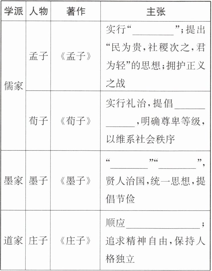 (2)孔子提出“仁”的思想,孟子将其