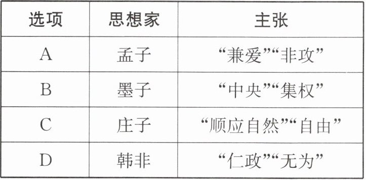 10.下列战国时期的思想家与其思想主张,对应正确的是(