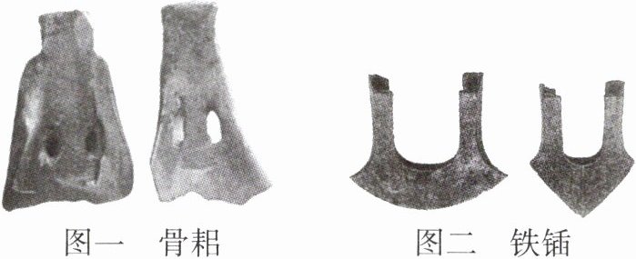 (1)河姆渡人使用材料一中的骨耜栽培什么农作物?从图一到图二生产工具的变化说明了什么问题?