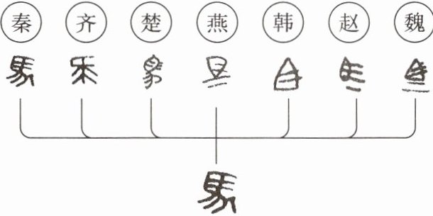 )。(秦、齐、楚、燕、韩、赵、魏各国文字“马”字,下方统一为“马”字)