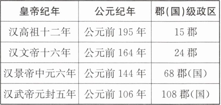9. 下表是西汉朝廷直接管辖的郡(国)级政区变化表。据此可知(