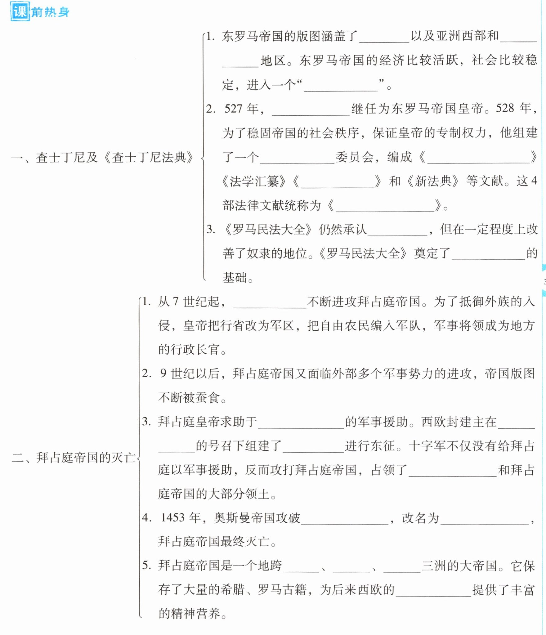 1. 东罗马帝国的版图涵盖了______以及亚洲西部和______地区。东罗马帝国的经济比较活跃,社会比较稳定,进入一个“______”。