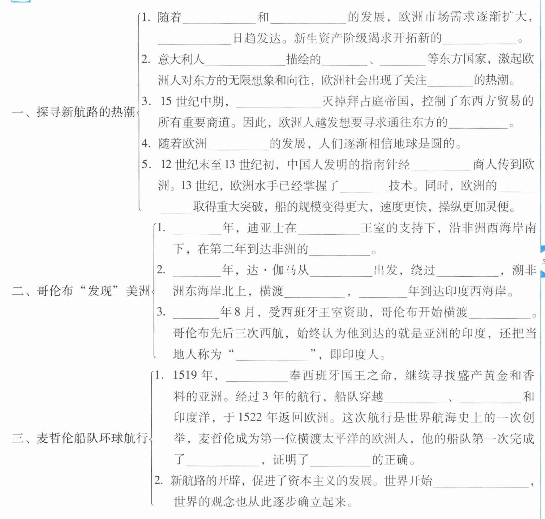 1. 随着______和______的发展,欧洲市场需求逐渐扩大,______日趋发达。新生资产阶级渴求开拓新的______。