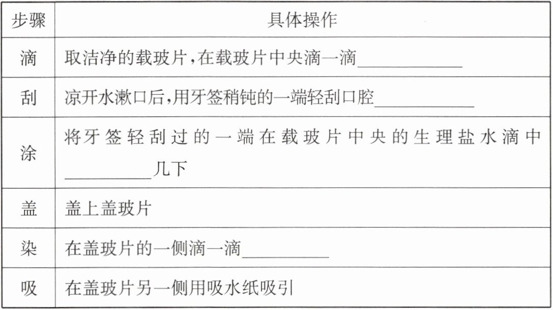 (2)辨别气泡与细胞:气泡在显微镜视野中呈现为具有粗而黑的边缘、形状为圆形或椭圆形,里面往往是一片空白,用镊子轻轻压一下盖玻片,气泡就会变形或移动,而细胞则不会。