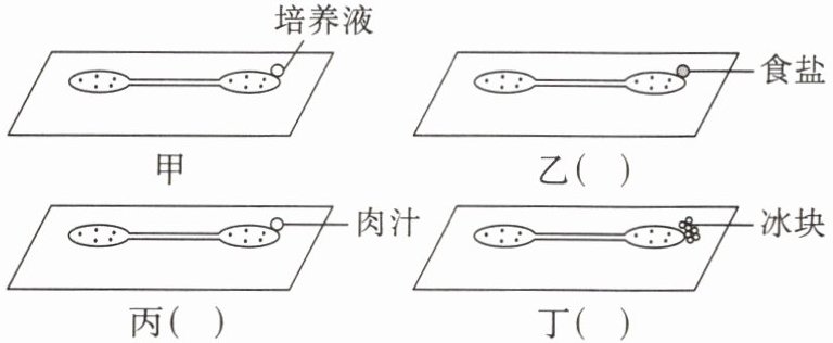 作用。(3)出现不同现象的原因是乙中的食盐、丁中的冰块对草履虫是