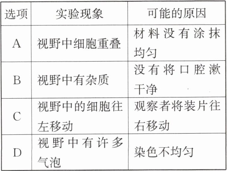 5. 若在观察人的口腔上皮细胞临时装片时,视野中细胞重叠在一起,则制作装片过程中最可能出现不当操作的步骤是(