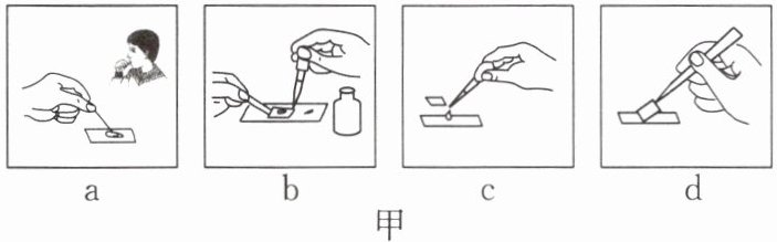 3. 图甲是“识别人的口腔上皮细胞的结构”的实验步骤示意图,图乙是单筒式光学显微镜的示意图。请据图回答问题。