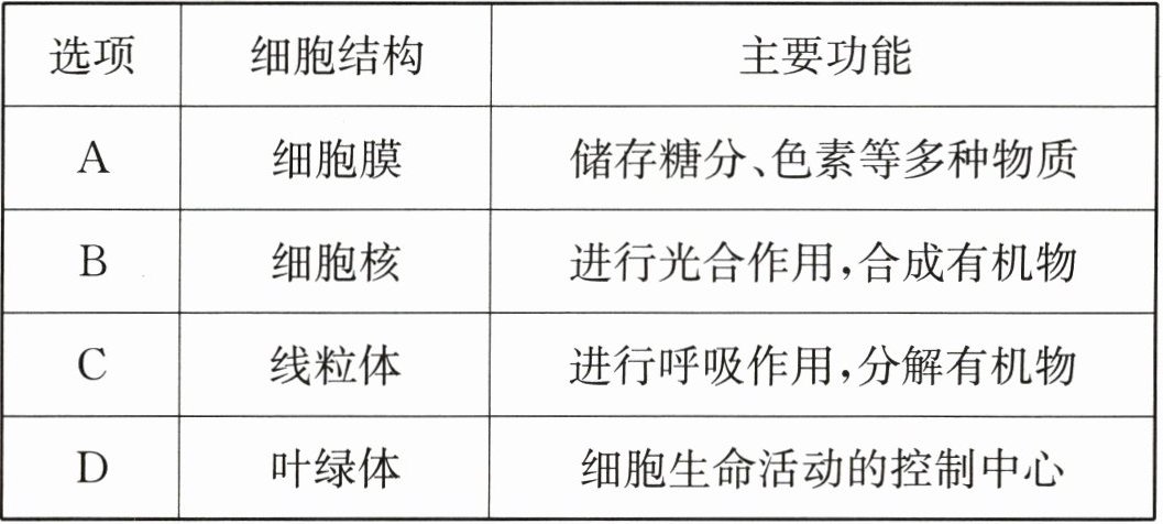 11. 下表中细胞结构与功能搭配正确的是(