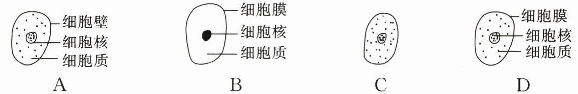 10. 画细胞结构简图时,可以用疏密不同的铅笔细点表示所观察物像的明暗差异,不能涂阴影。四位同学在显微镜下观察人的口腔上皮细胞临时装片,并绘制其结构简图。下列简图中正确且符合生物绘图基本要求的是(