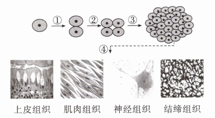 5. 如图所示为人体组织的形成过程,请分析并回答问题。