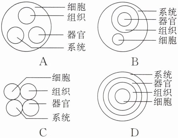 6. 人体是由细胞、组织、器官、系统组成的统一体,下列能正确反映这四大概念关系的是(