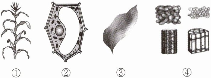 1. 玉米是重要的粮食作物,如图为玉米各个结构层次的示意图。按照由小到大的顺序正确排列的是(