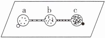 11. 某同学为探究草履虫的趋性,在载玻片的 a、b、c 三处各滴两滴草履虫培养液,将其连通,a 处边缘放一粒食盐,c 处边缘滴一滴肉汁,一段时间后,实验结果如图。下列相关叙述错误的是(