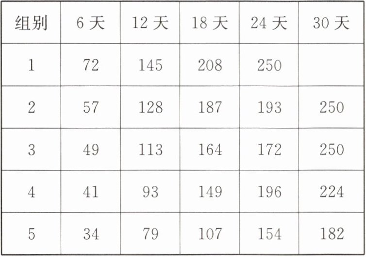 8. 大气中的二氧化硫浓度超过一定值时,葫芦藓就不能生存。某化工厂的烟囱中有二氧化硫排放,为研究二氧化硫对植物的影响,某生物学研究小组在烟囱附近每隔一定距离的地方栽种250株葫芦藓,由近至远分别编号为1组、2组、3组、4组、5组。葫芦藓植株死亡数统计如下表(单位:株)。