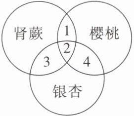 7. 小秦在比较肾蕨、樱桃和银杏的共同特征后,绘制了如图所示概念图。下列分析正确的是(