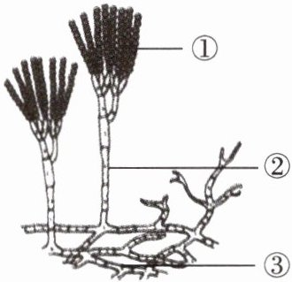 6.某同学发现家里储存的橘子长了青绿色的“毛”,推测是由于青霉生长和繁殖引起的,他对长有青霉的橘子皮进行了观察,并绘制了结构图(如图)。以下说法不正确的是(