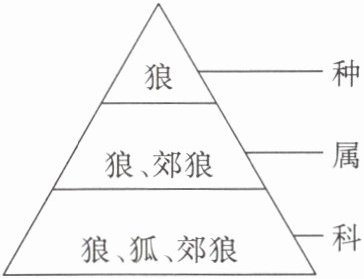 5. 如图是某同学归纳的狼在部分分类等级中的位置。据图分析正确的是(