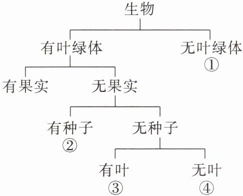 2. 如图是某同学建立的生物分类图,其中①~④各代表一种生物。下列哪组生物不符合该图分类?(
