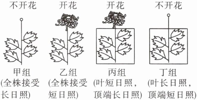 C.仅丙、丁两组对比,说明菊花感受光照的部位是叶