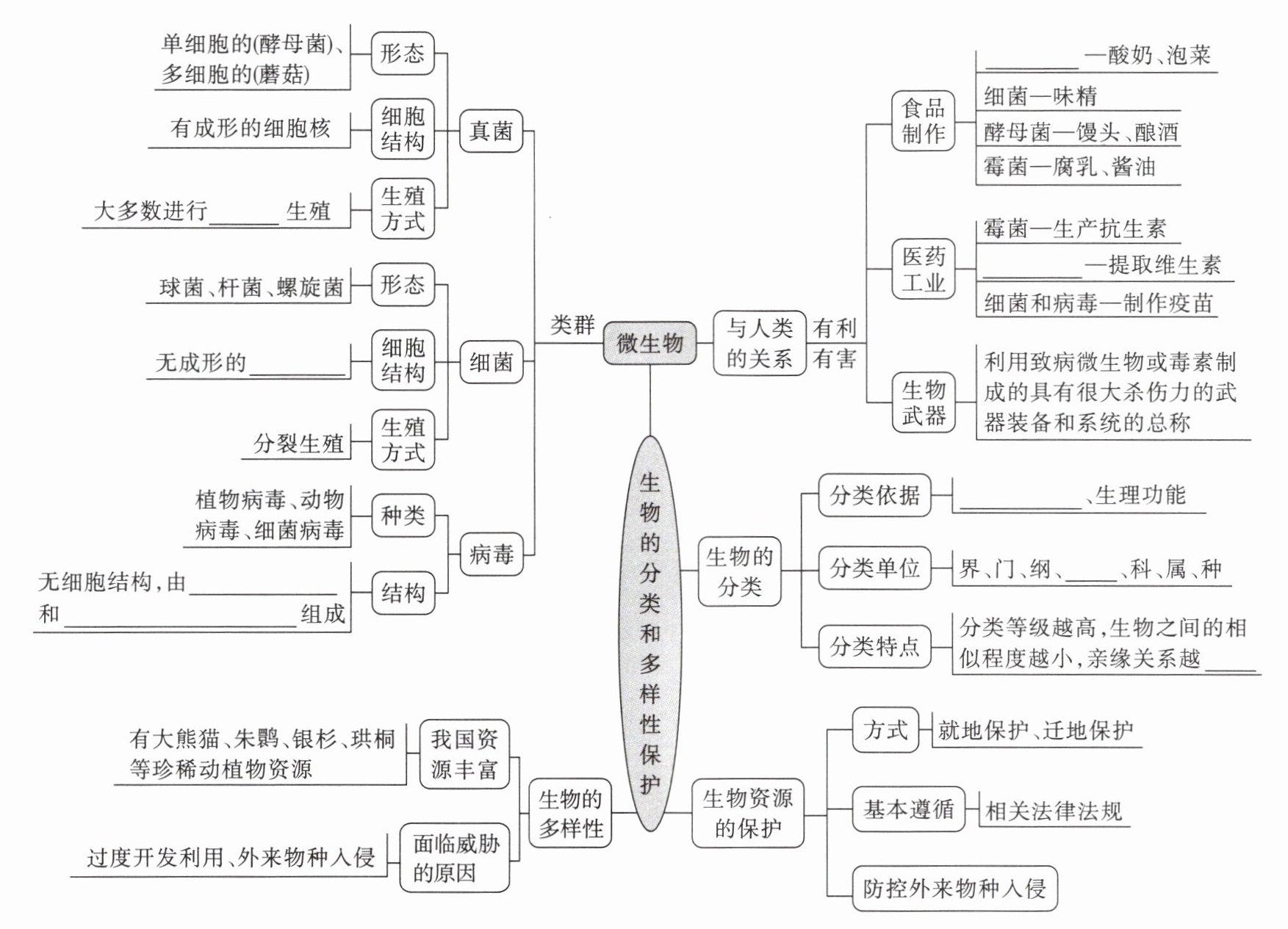孢子;细胞核;蛋白质外壳;内部的遗传物质;乳酸菌;细菌和真菌;生物武器;形态结构;目;远