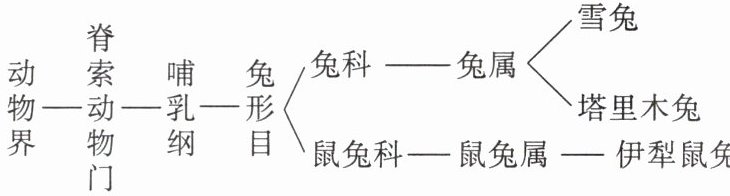 动物。(2)除了伊犁鼠兔之外,新疆的雪兔、塔里木兔也是国家二级重点保护野生动物。据图分析,与塔里木兔共同特征更多的是