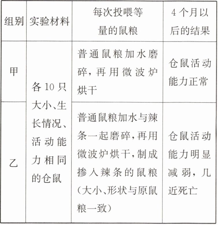 5. 某生物学兴趣小组同学发现,每天放学以后,同学们都喜欢在校园附近的商店买零食吃,其中一元一包的辣条最受同学们的欢迎。辣条会不会对身体造成伤害呢?现以仓鼠为研究对象设计一个实验,对这个问题进行探究。