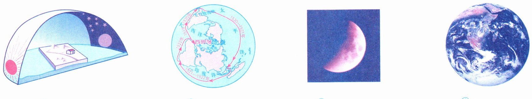 天圆地方 麦哲伦船队环球旅行 月食变化 地球卫星影像 ①③②④
