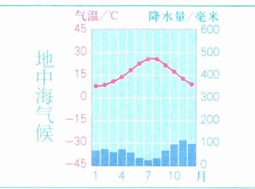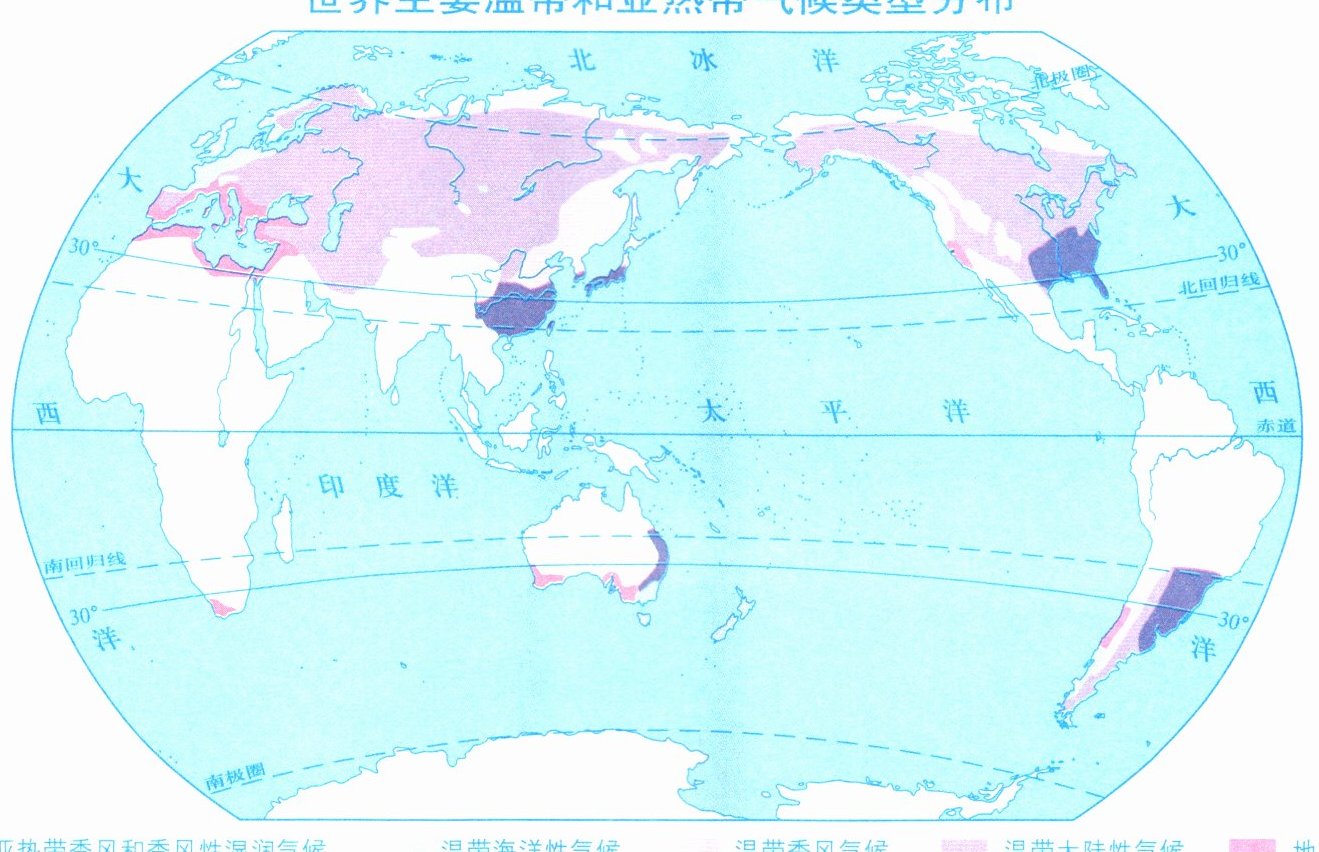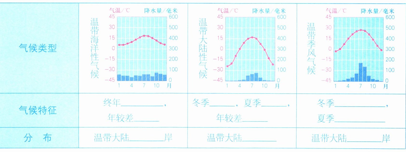 3. 读“世界主要温带和亚热带气候类型分布”图,完善下表。